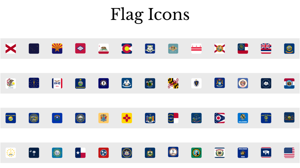 - 50 State Flags: Crisp, vector-based flags for all states.